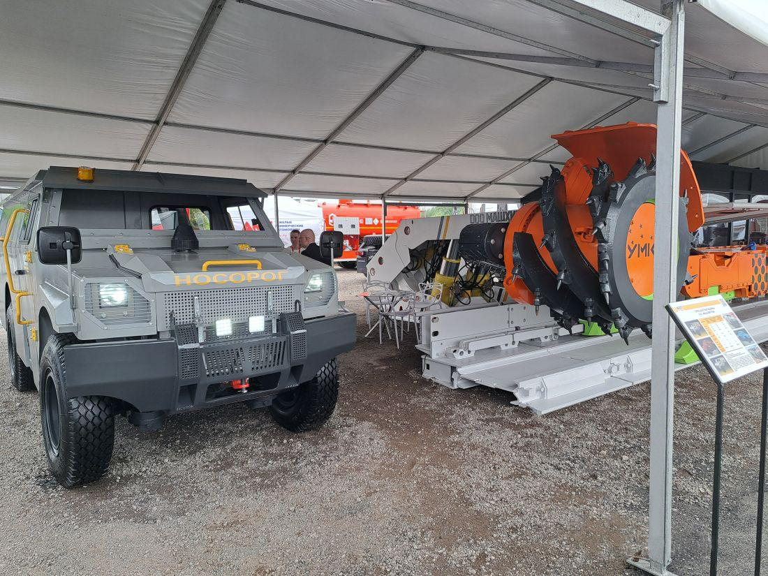 МАШХИМПРОМ представил внушительные по габаритам экспонаты: механизированные крепи, очистные комбайны и шахтный транспорт. Особое внимание посетителей привлекла новинка этого года – горно-шахтная машина «НОСОРОГ».