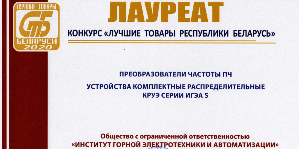 ООО «Институт горной электротехники и автоматизации» победило в номинации «Продукция производственно-технического назначения», где товарами – победителями являются: