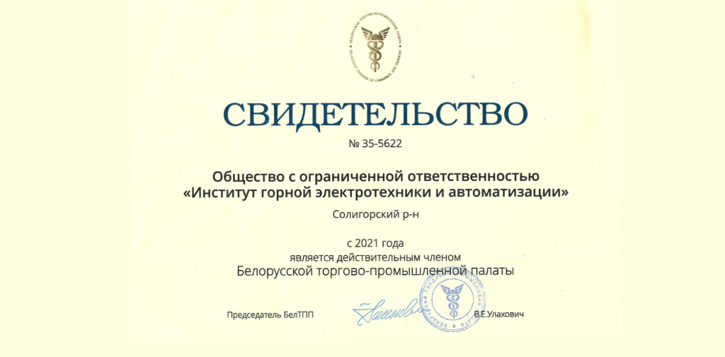 ООО «Институт горной электротехники и автоматизации» стал членом Белорусской торгово-промышленной палаты 30 июня 2021 года.